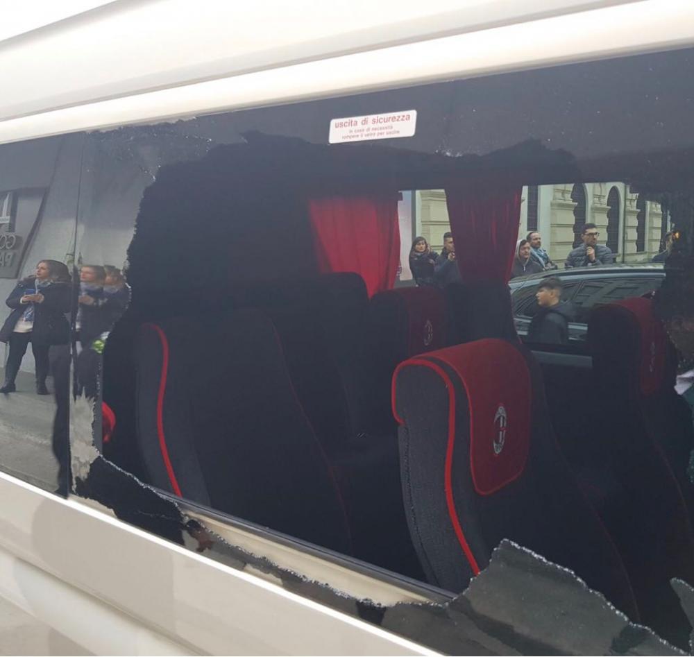 FOTO - Vergogna allo Juventus Stadium: pullman staff del Milan distrutto da una sprangata