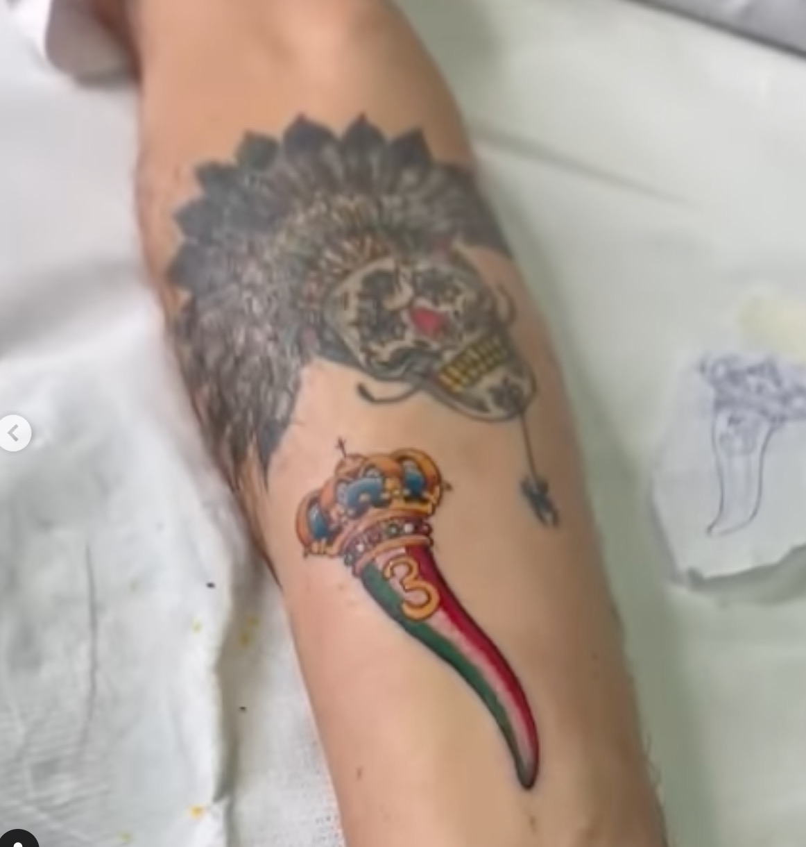 Anche Edoardo De Laurentiis, vice-presidente del Napoli, s'è tatuato il terzo Scudetto. Come mostrano le immagini di Enzo Brandi sui social, Edo ha scelto un corno azzurro col tricolore e l'immancabile numero 3: "Oggi al nostro studio, il vice-presidente Edo De Laurentiis aggiunge nuovi tatuaggi al suo corpo, tra cui un cornicello dedicato a Napoli ed al nostro scudetto. Grazie e forza Napoli sempre", il messaggio del noto tatuatore.