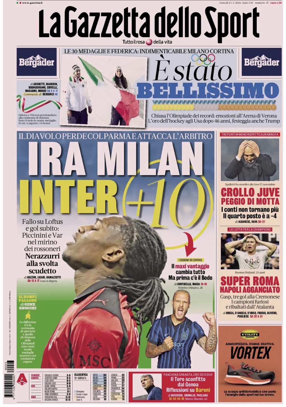 Gazzetta dello Sport: "Ira Milan, Inter a +10"