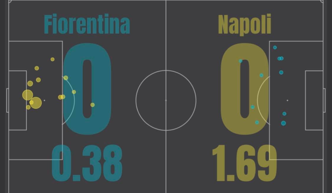 Lo 0-0 raccolto a Firenze, con lunghe fasi di possesso se non addirittura il pallino del gioco a favore dei viola, rischia di falsare i giudizi sulla gara. Il Napoli ha avuto le occasioni migliori, concedendo tutto sommato un contropiede non finalizzato da Barak ed un'altra occasione dopo la sbavatura di Meret. Lo testimonia l'algoritmo dell'xG (expected goals, i gol attesi), sempre più in uso in Europa, l'indicatore più preciso per misurare la produzione offensiva in base all'indice di pericolosità: il Napoli ha totalizzato 1,69 (di più rispetto alla scorsa stagione in cui vinse segnando due gol, uno su rigore ed uno su palla inattiva) che di solito porta ad almeno 2 reti. Clamorose ovviamente almeno due occasioni sprecate da Lozano. Di contro lo 0,39 dei viola solitamente non porta ad un gol.