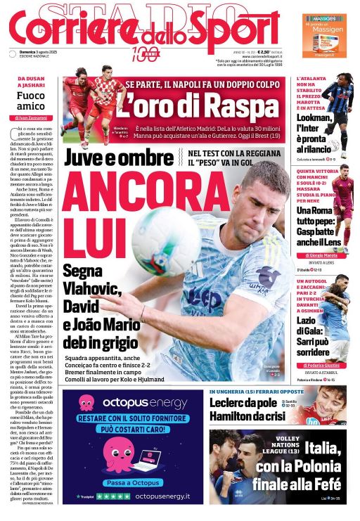 "Ancora lui". Questo il titolo in prima pagina dell'edizione odierna del Corriere dello Sport. Il riferimento è a Dusan Vlahovic. L'attaccante della Juventus, considerato in uscita dalla formazione bianconera, è comunque andato a segno nel match amichevole pareggiato dalla squadra di Tudor per 2-2 contro la Reggiana di ieri mattina.