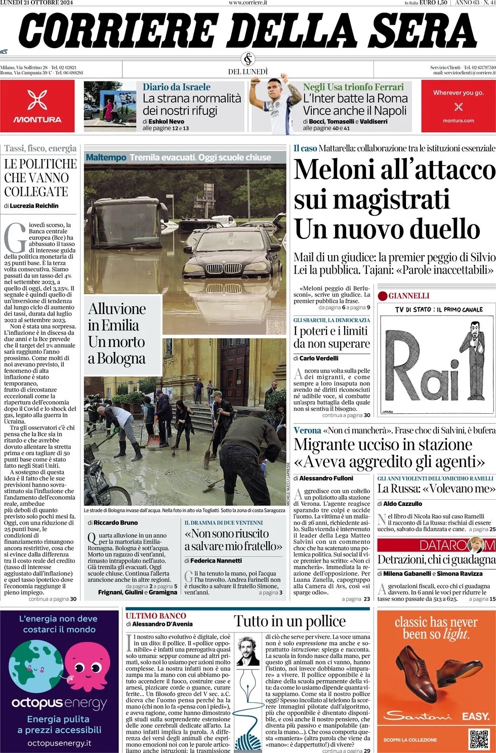 "L'Inter batte la Roma. Vince anche il Napoli", l'apertura odierna del Corriere della Sera: entrambi 1-0, anche la trasferta degli azzurri a Empoli. Proprio come Milan-Udinese e Juve-Lazio. I nerazzurri portano a casa tre punti dall'Olimpico contro la Roma per una sassata di Lautaro, agli uomini di Conte basta un rigore di Kvaratskhelia.