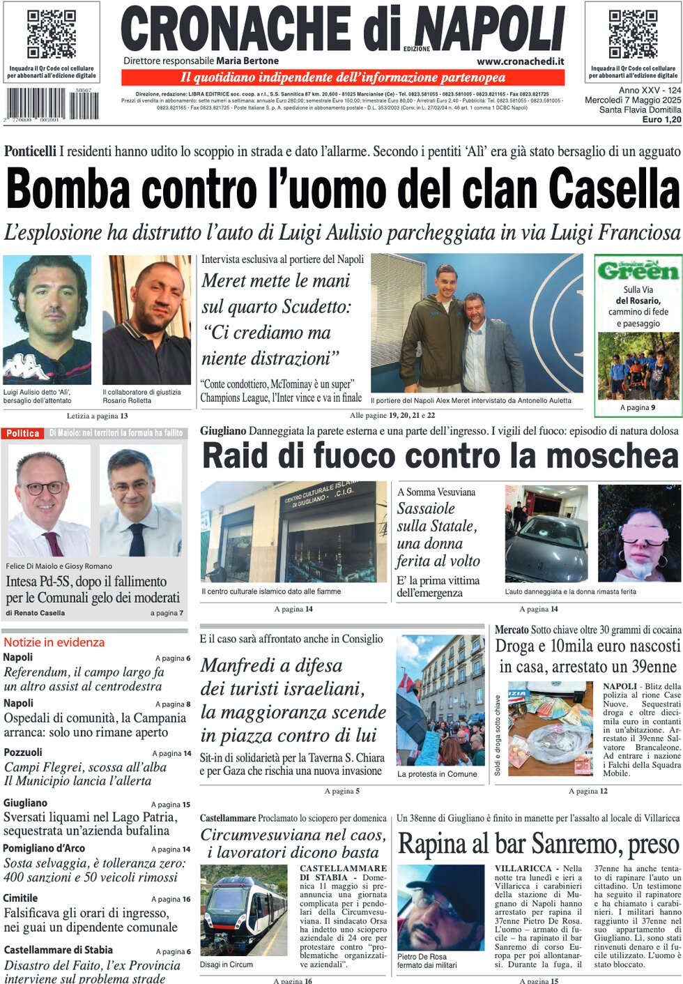 Cronache di Napoli dedica come al solito un ampio spazio alle questioni calcistiche, concentrandosi ovviamente sulle vicende della formazione di Antonio Conte. Spazio in particolare alle dichiarazioni del portiere azzurro, sintetizzate nel seguente titolo: "Meret mette le mani sul quarto scudetto: ci crediamo, ma niente distrazioni".