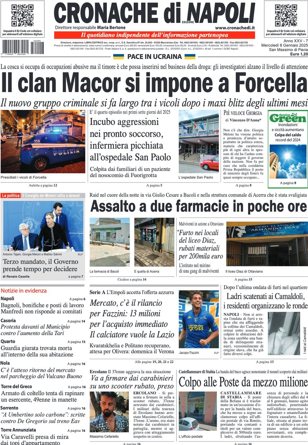 "Mercato, c'è il rilancio per Fazzini: 13 milioni per l'acquisto immediato". Questo è uno dei titoli di oggi per quanto riguarda la prima pagina del quotidiano Cronache di Napoli.