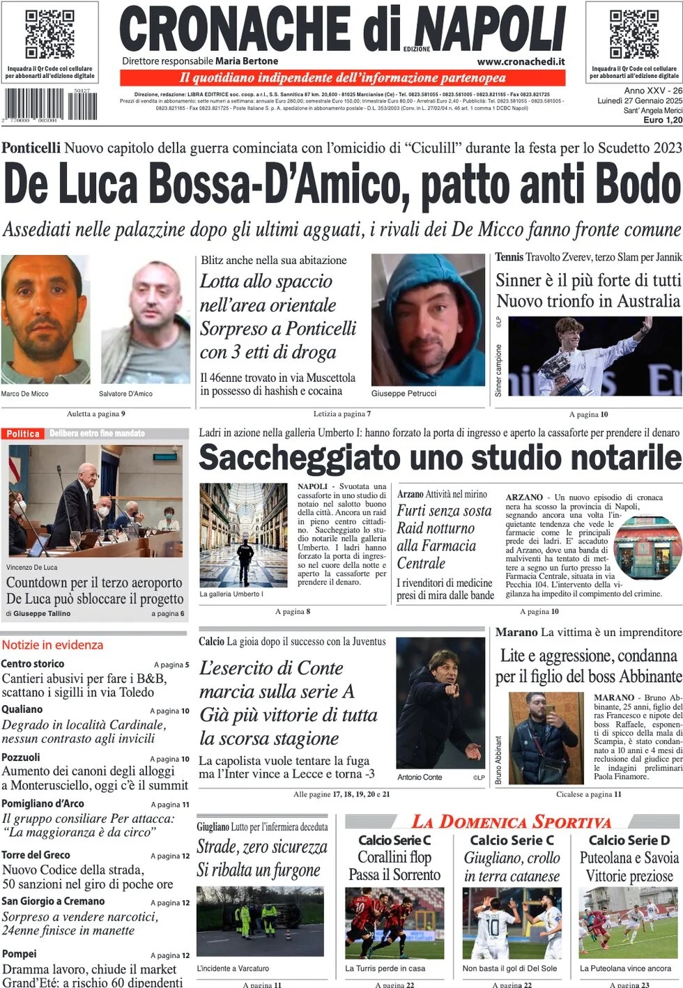 Cronache di Napoli: "L'esercito di Conte marcia sulla Serie A, ma l'Inter vince"