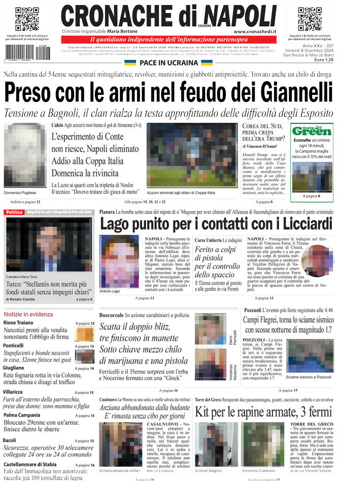 "L'esperimento di Conte non riesce, Napoli eliminato". Titola così oggi in prima pagina Cronache di Napoli, aggiungendo: "Addio alla Coppa Italia, domenica la rivincita".