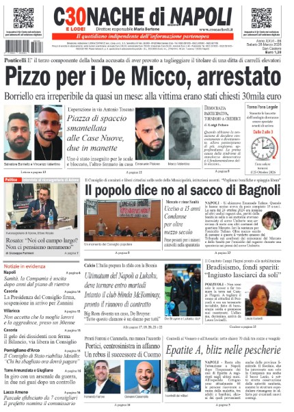 In prima pagina l'edizione odierna di Cronache di Napoli riporta anche un box legato al calcio, al Napoli e inevitabilmente al caso Romelu Lukaku. "Ultimatum del Napoli a Lukaku, deve tornare entro martedì", titola il quotidiano. Poi spazio anche a una buona notizia: "Intanto il club blinda McTominay, pronto il rinnovo di contratto".