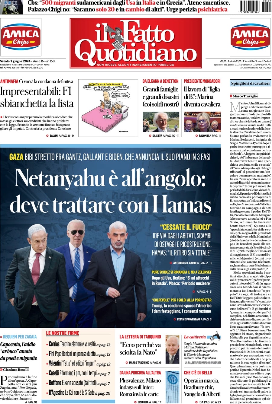 "Plusvalenze, Milano indaga sull'Inter: Roma invia le carte" scrive Il Fatto Quotidiano in prima pagina quest'oggi. L'inchiesta capitolina sulle plusvalenze dell'As Roma rischia di creare un effetto domino nella Serie A di calcio. A iniziare dall’Inter fresca campione d’Italia, su cui tornano a indagare i pm della Procura di Milano.
