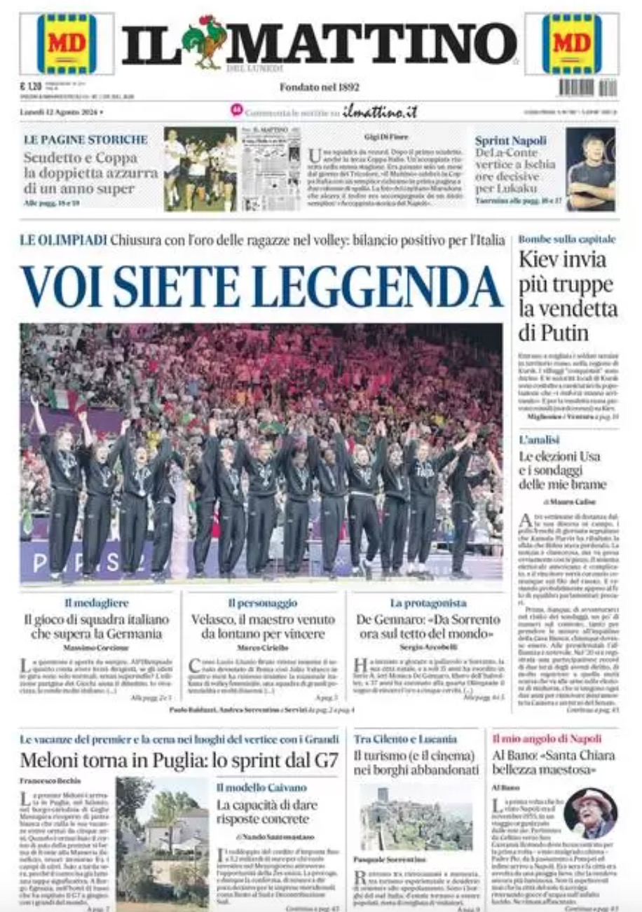 "ADL-Conte, vertice ad Ischia. Ore decisive per Lukaku", è quanto scrive in prima pagina il quotidiano partenopeo Il Mattino, raccontando dello sprint del club azzurro sul mercato che entra nella sua fase finale. Di seguito la prima pagina integrale