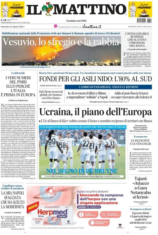 In prima pagina l'edizione odierna de Il Mattino si sofferma proprio sulla partita e titola: "Nel segno di De Bruyne". Una doppietta del belga, dunque, trascina gli azzurri alla vittoria. Prestazione in crescita.