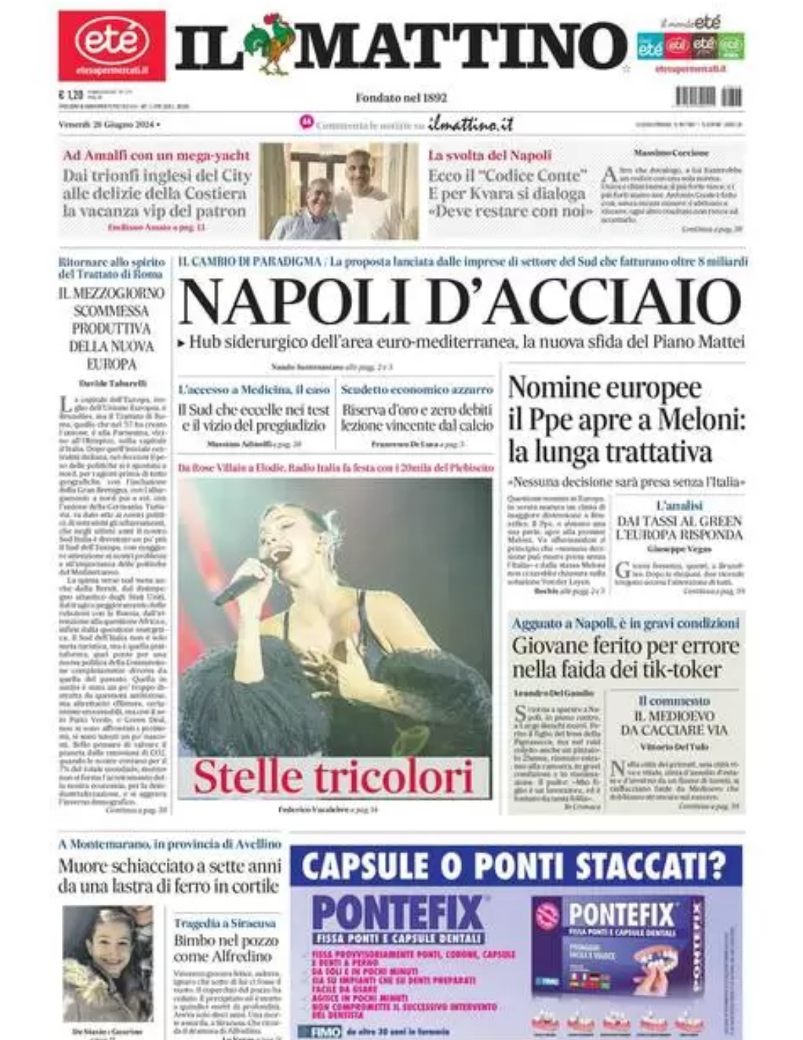 “Ecco il ‘Codice Conte’" scrive il quotidiano Il Mattino in prima pagina mettendo in risalto il nuovo Napoli guidato dal tecnico salentino. Spazio anche alla questione legata al futuro di Khvicha Kvaratskhelia: “E per Kvara si dialoga: ‘Deve restare con noi’”. Di seguito la prima pagina integrale