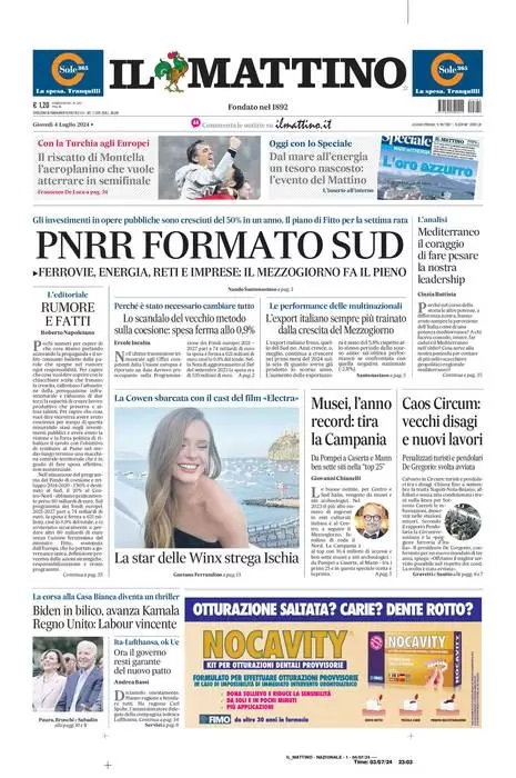 Nell'edizione di oggi, Il Mattino dedica spazio a Vincenzo Montella, tecnico della Turchia: "Il riscatto di Montella: l'aeroplanino che vuole atterrare in semifinale. Con la Turchia agli Europei". Di seguito la prima pagina integrale.