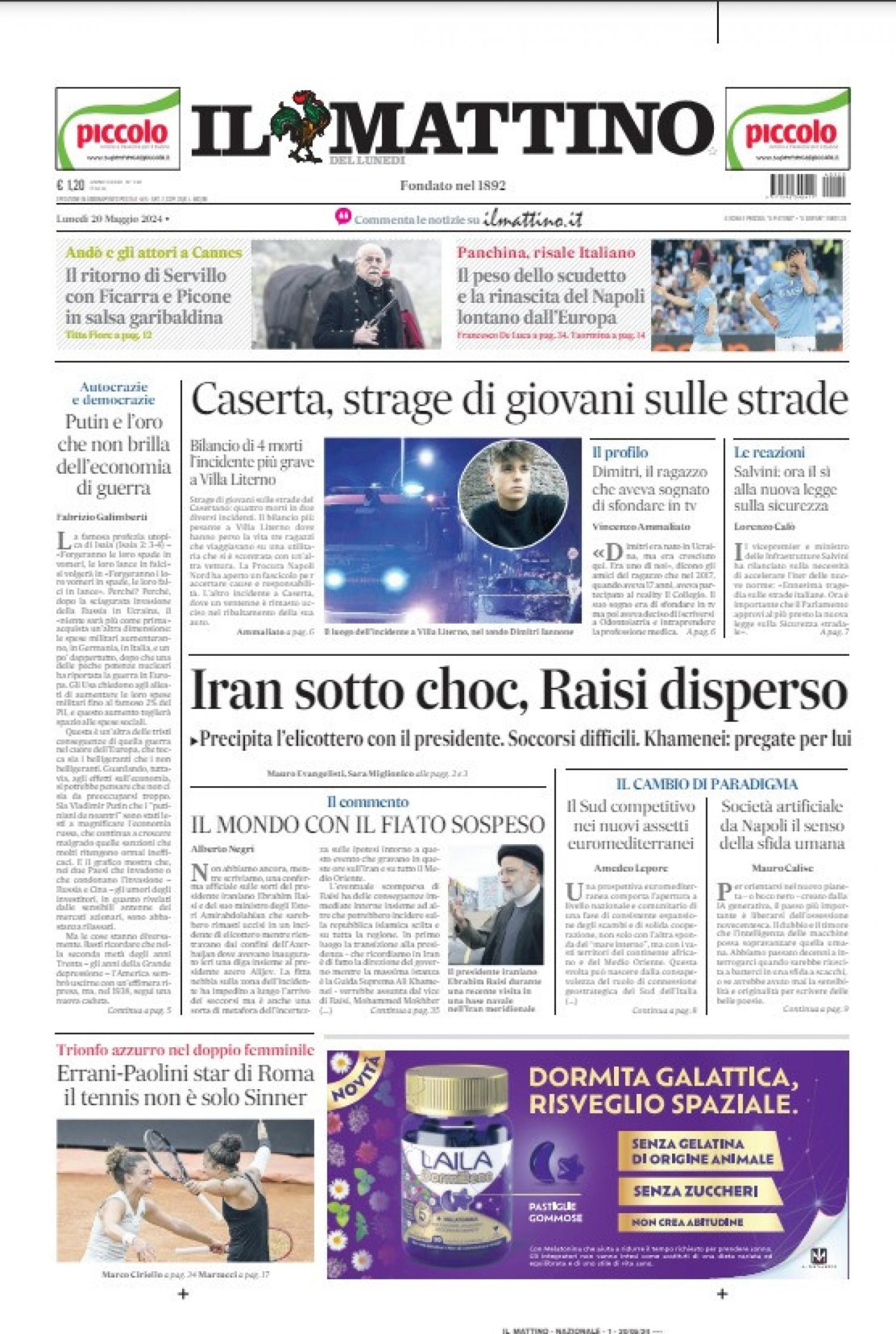 Nell'edizione di oggi, Il Mattino dedica spazio in prima pagina al futuro del Napoli: "Panchina, risale Italiano. Il peso dello scudetto e la rinascita del Napoli lontano dall'Europa". Di seguito la prima pagina integrale.