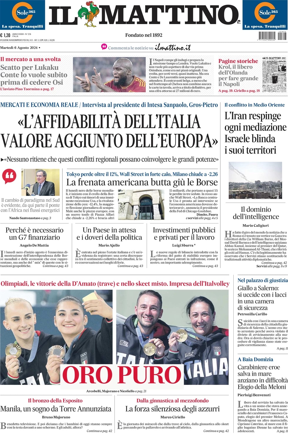 "Scatto Lukaku: Conte lo vuole prima di cedere Osimhen", il titolo che compare nel taglio alto del quotidiano campano.