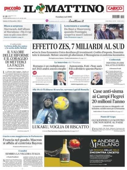 "Lukaku, voglia di riscatto". E' questo il titolo che l'edizione odierna de Il Mattino dedica al Napoli e al match contro l'Udinese. Alle 18, oggi, con "Kvara ko servono i gol di Romelu".