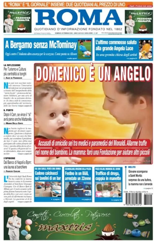 "A Bergamo senza McTominay". E' questo il titolo d'apertura dell'edizione odierna de Il Roma, per quanto riguarda lo sport. In taglio alto si parla del big match di oggi contro l'Atalanta, raccontando il secondo forfait di fila dello scozzese e la scelta di Conte per sostituirlo: giocherà Alisson Santos.