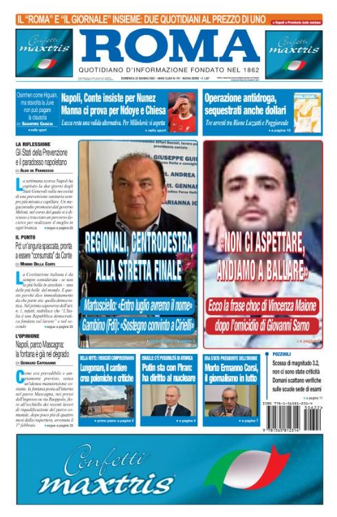 "Napoli, Conte insiste per Nunez. Manna ci prova per Ndoye e Chiesa". E' questo il titolo del quotidiano Il Roma in prima pagina in questa domenica. "Lucca resta una valida alternativa. Per Milinkovic si aspetta", si legge ancora.