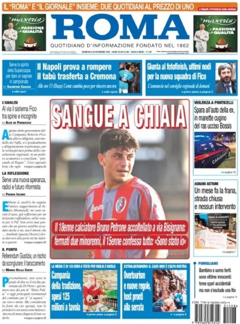 "Il Napoli prova a rompere il tabù trasferta a Cremona". E' questo il titolo che Il Roma dedica oggi in edicola al Napoli e al match dello Zini in programma oggi alle 15. Alla ricerca di un altro successo, Antonio Conte - si legge - cambia il meno possibile nell'undici che scenderà in campo. "Serve lo spirito della Supercoppa per dare un segnale in campionato", si legge ancora.
