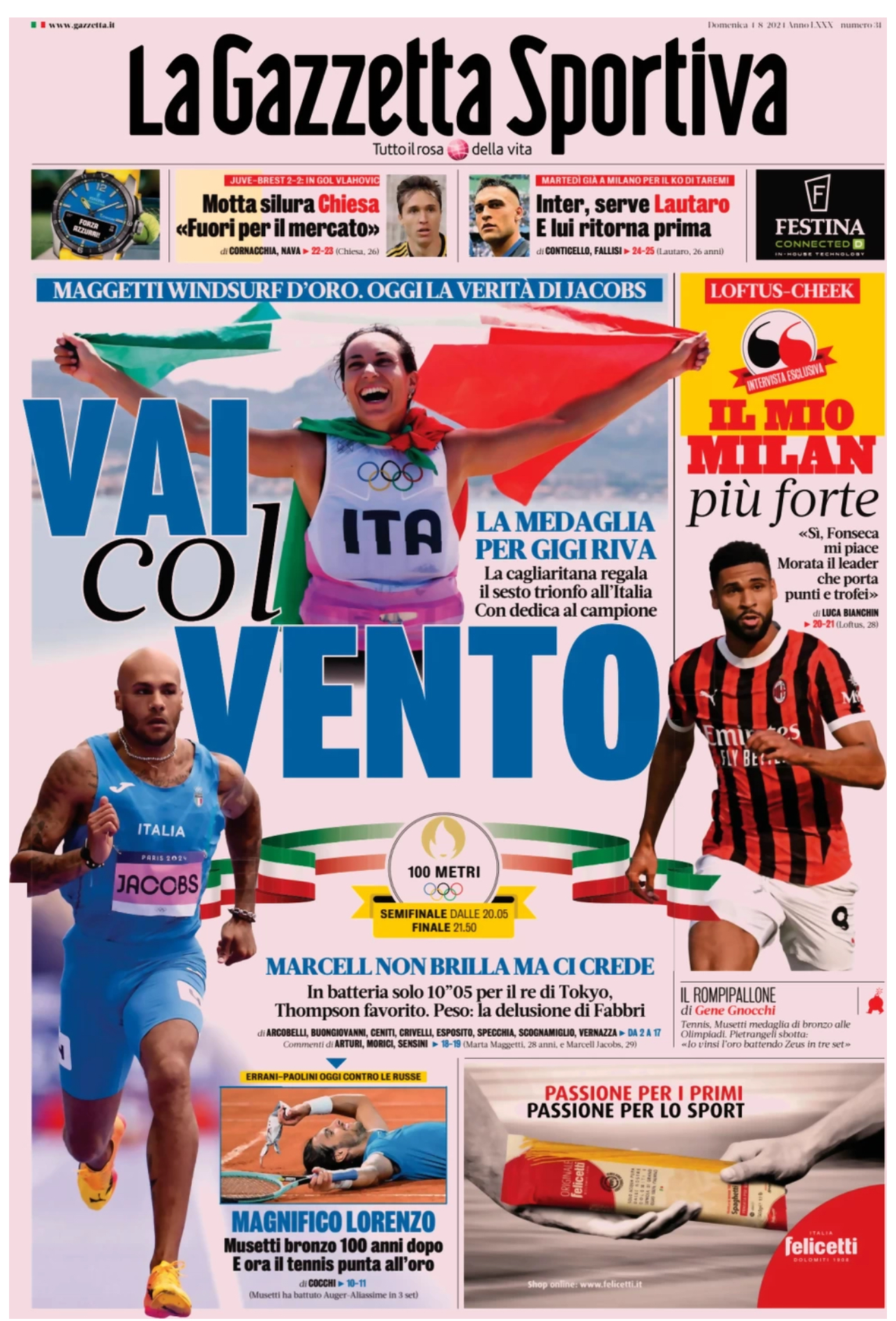 "Fonseca mi piace, Morata il leader che porta trofei", si legge sull'apertura de La Gazzetta dello Sport dedicata al Milan e alle parole di Loftus-Cheek, intervistato dal quotidiano rosa. Si parla anche del caso Chiesa, l'attaccante ormai è fuori dal progetto della Juventus come ribadito ieri da Thiago Motta: l'azzurro dovrà trovare una soluzione nel minor tempo possibile.