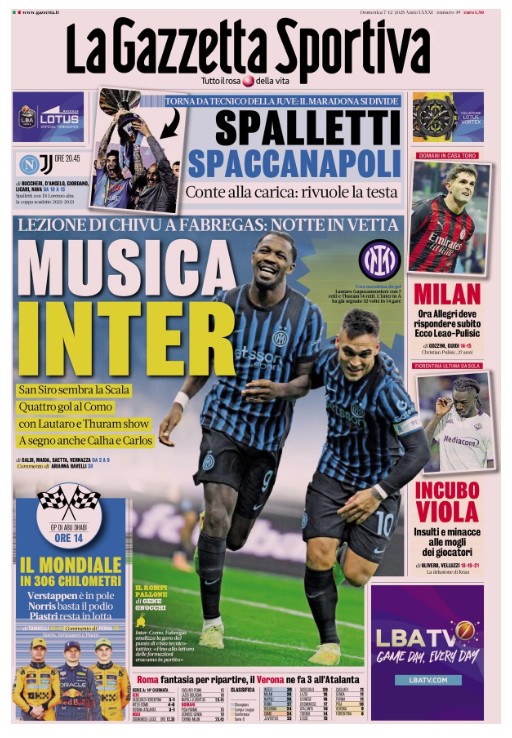 La Gazzetta dello Sport in taglio alto: "Spalletti SpaccaNapoli"