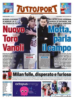 "Motta, parla il campo". Titola così in prima pagina Tuttosport, soffermandosi sul prossimo impegno di campionato della Juventus, che questa sera chiuderà la ventisettesima giornata di Serie A ospitando il Verona all'Allianz Stadium. Un confronto importantissimo per la Vecchia Signora, che punta alla quinta vittoria consecutiva per riprendersi il quarto posto e accorciare anche rispetto alla vetta occupata dall'Inter.