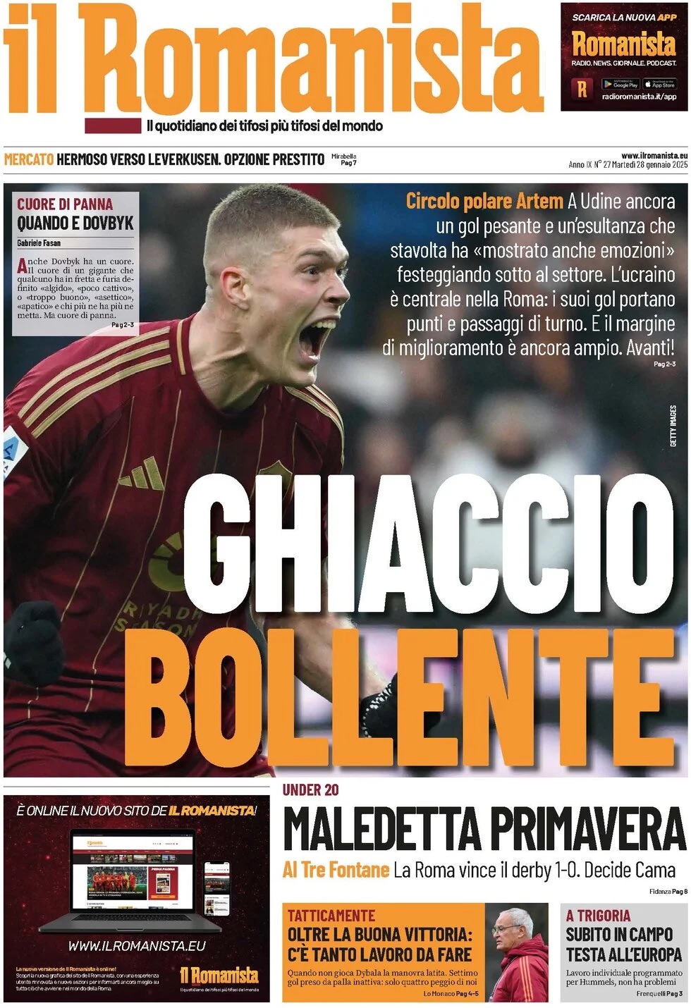 "Ghiaccio bollente", lo riassume così in prima pagina Il Romanista: il centravanti ucraino è centrale nel progetto del club capitolino. E i margini di miglioramento con Ranieri sono ampi.