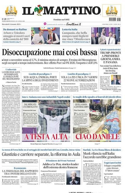 Nell'edizione di oggi, Il Mattino dedica spazio al Napoli in prima pagina: "A testa alta. Napoli e Atalanta non sono imbattibili: Napoli credici". A centro pagina l'ultimo saluto a Daniele, il giovanissimo tifoso azzurro scomparso sabato: "Ciao Daniele. Le maglie della squadra ai funerali del piccolo tifoso". Di seguito la prima pagina integrale.