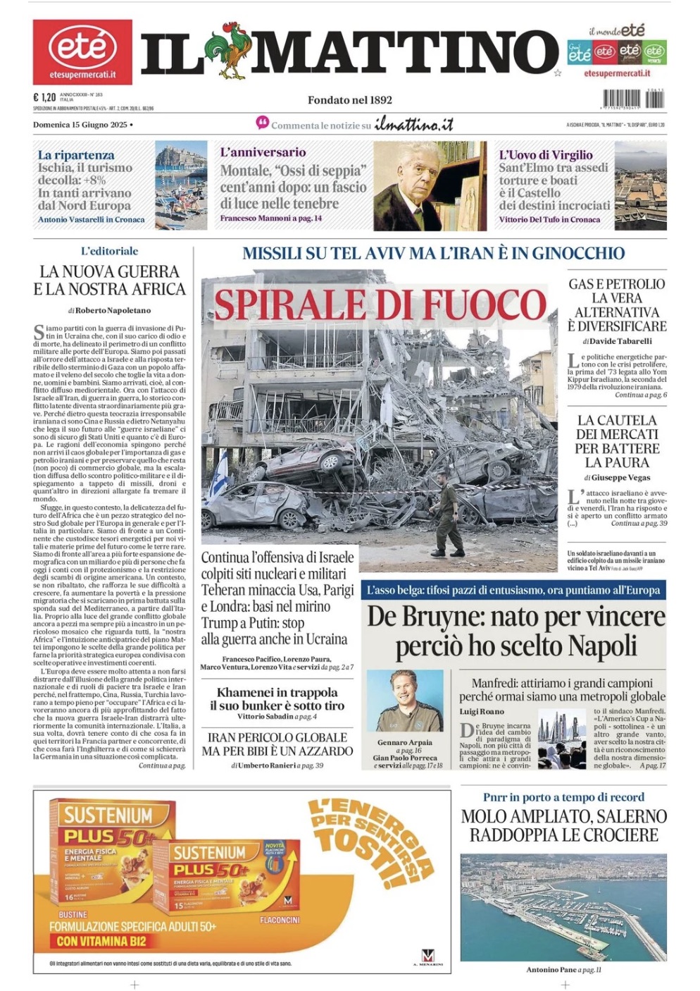 L'edizione odierna de Il Mattino apre in prima pagina con le prime dichiarazioni di Kevin De Bruyne da calciatore azzurro: "Nato per vincere, perciò ho scelto Napoli". Il sommario: "L'asso belga: «Tifosi pazzi d'entusiasmo, ora puntiamo all'Europa»". Spazio anche alle parole del Sindaco di Napoli, Gaetano Manfredi: "Attiriamo i grandi campioni perché ormai siamo una metropoli globale". Di seguito la prima pagina integrale.