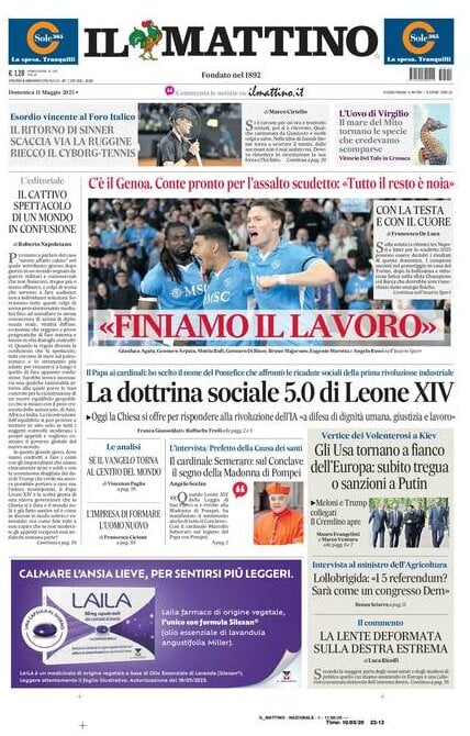 Nell'edizione di oggi, Il Mattino dedica l'apertura in prima pagina alle dichiarazioni di Antonio Conte in vista di Napoli-Genoa, terzultima tappa verso lo scudetto: "Finiamo il lavoro". "C'è il Genoa, Conte pronto per l'assalto scudetto: «Tutto il resto è noia»". Di seguito la prima pagina integrale.