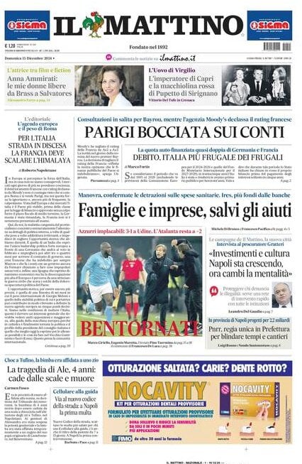 Nell'edizione odierna, Il Mattino dedica spazio in prima pagina alla vittoria del Napoli a Udine, che risponde alla capolista Atalanta vittoriosa a Cagliari: "Bentornati. Azzurri implacabili: 3-1 a Udine. L'Atalanta resta a -2". Di seguito la prima pagina integrale.