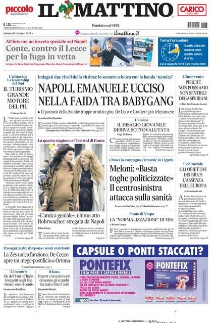 Nell'edizione di oggi, Il Mattino dedica spazio in prima pagina e all'interno alla sfida di oggi al Maradona tra Napoli e Lecce: "Conte, contro il Lecce per la fuga in vetta". In apertura le indagini per lo scontro a fuoco tra bande nemiche al rione Sanità: "Napoli, Emanuele ucciso tra la faida tra babygang". Di seguito la prima pagina integrale.