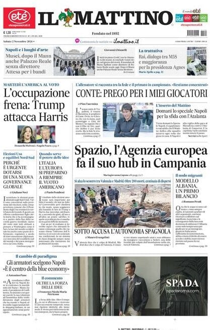 Nell'edizione di oggi, Il Mattino apre in prima pagina con le parole di Antonio Conte nella conferenza in vista di Napoli-Atalanta: "Conte: Prego per i miei giocatori. L'allenatore si racconta tra la fede e il primato in campionato: 'Restiamo concentrati'". Di seguito la prima pagina integrale.