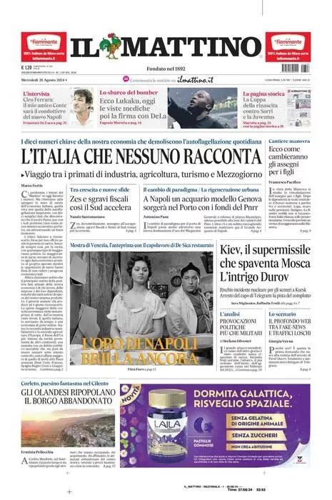 Nell'edizione di oggi, Il Mattino dedica spazio al mercato del Napoli in prima pagina: "Lo sbarco del bomber. Ecco Lukaku, oggi le visite mediche poi la firma con DeLa". In taglio alto l'intervista all'ex azzurro Ciro Ferrara: "Il mio amico Conte sarà il condottiero del nuovo Napoli". Di seguito la prima pagina integrale.