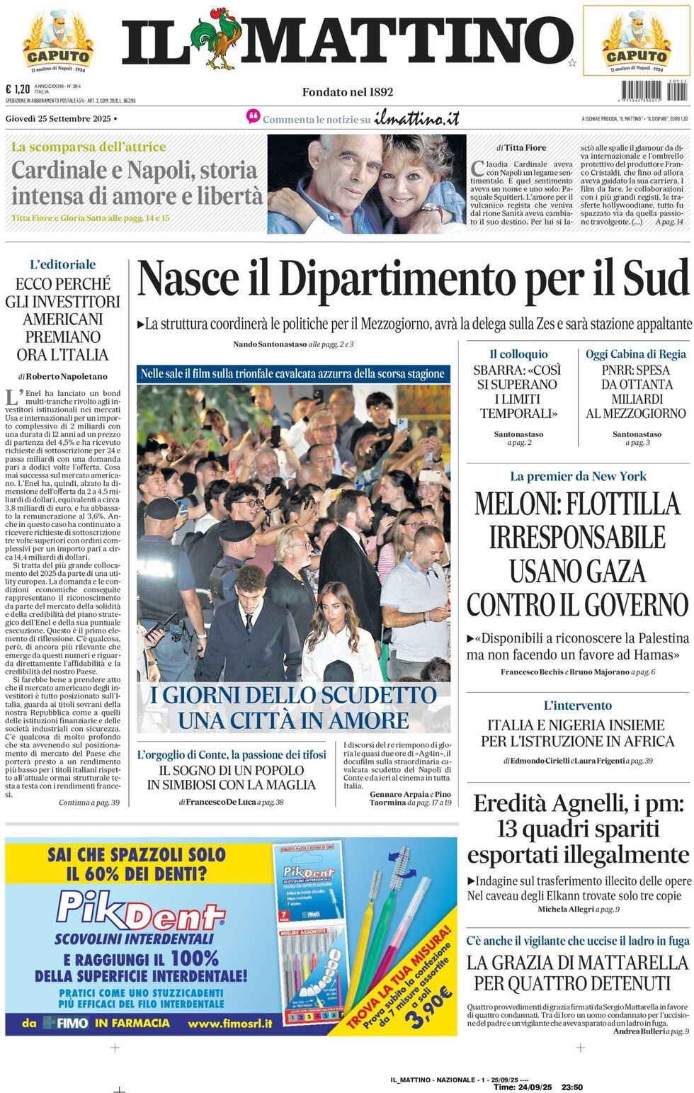 Nell'edizione di oggi, Il Mattino dedica ampio spazio all'uscita nelle sale al cinema di "Ag4in", film sul quarto scudetto del Napoli conquistato nella scorsa stagione: "I giorni dello scudetto: una città in amore". Di seguito la prima pagina integrale.