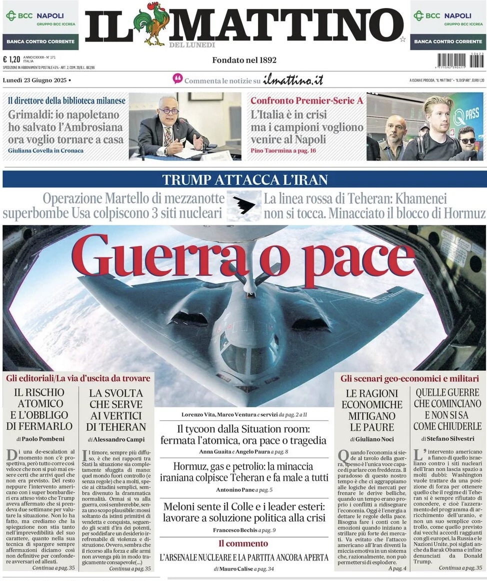 Il Mattino in apertura: "Italia in crisi, ma i campioni vogliono venire a Napoli"