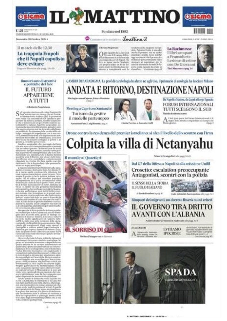 "La trappola Empoli che il Napoli capolista deve evitare", apre così in prima pagina l'edizione odierna de Il Mattino, parlando della gara di Serie A che oggi attende gli azzurri primi in classifica. Di seguito la prima pagina integrale.