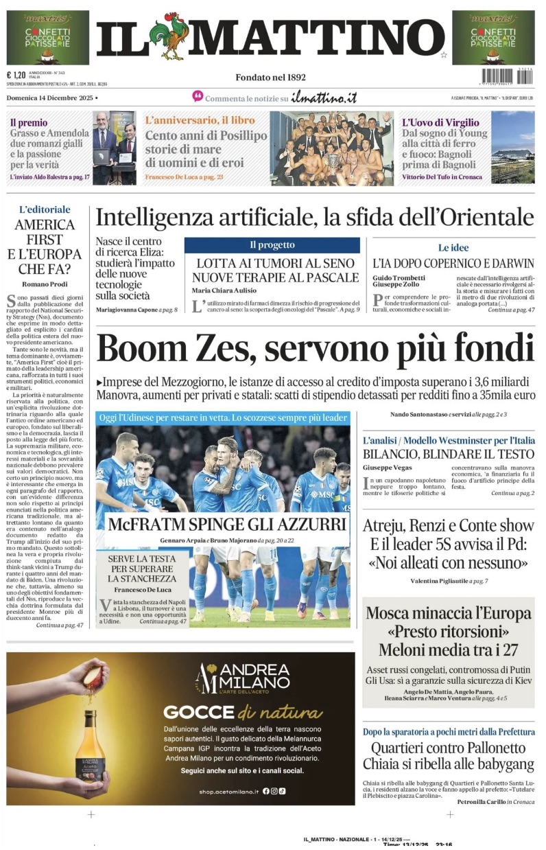 Il Mattino: "McFratm spinge gli azzurri"