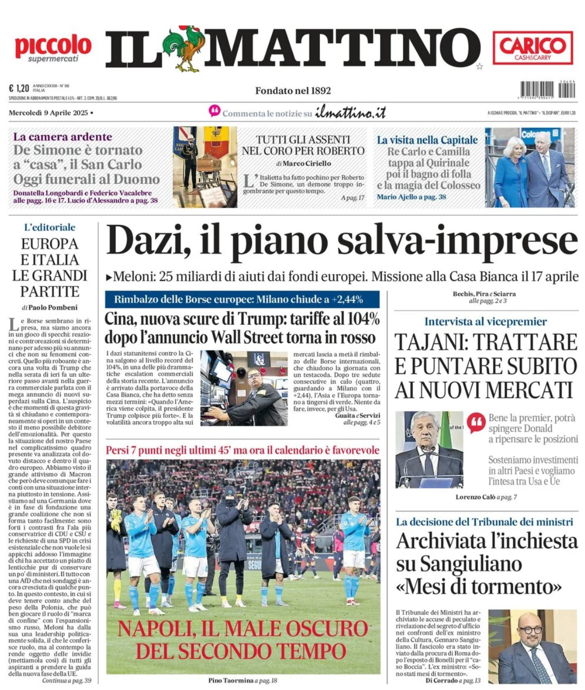 Nell'edizione di oggi, il quotidiano napoletano Il Mattino apre in prima pagina con il momento del Napoli dopo il pareggio di Bologna: “Il male oscuro del secondo tempo. Persi 7 punti negli ultimi 45’, ma ora il calendario è favorevole”. Di seguito la prima pagina completa.