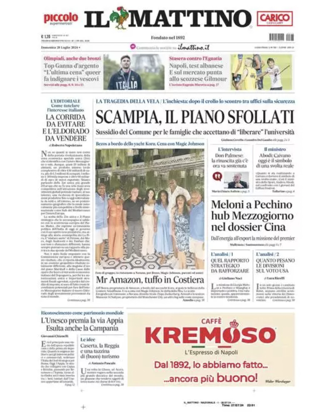 "Napoli, test albanese. E sul mercato punta allo scozzese Gilmour", scrive così in prima pagina l'edizione odierna de Il Mattino parlando dell'amichevole degli azzurri contro l'Egnatia, con uno sguardo all'obiettivo di mercato per il centrocampo. Di seguito la prima pagina integrale.