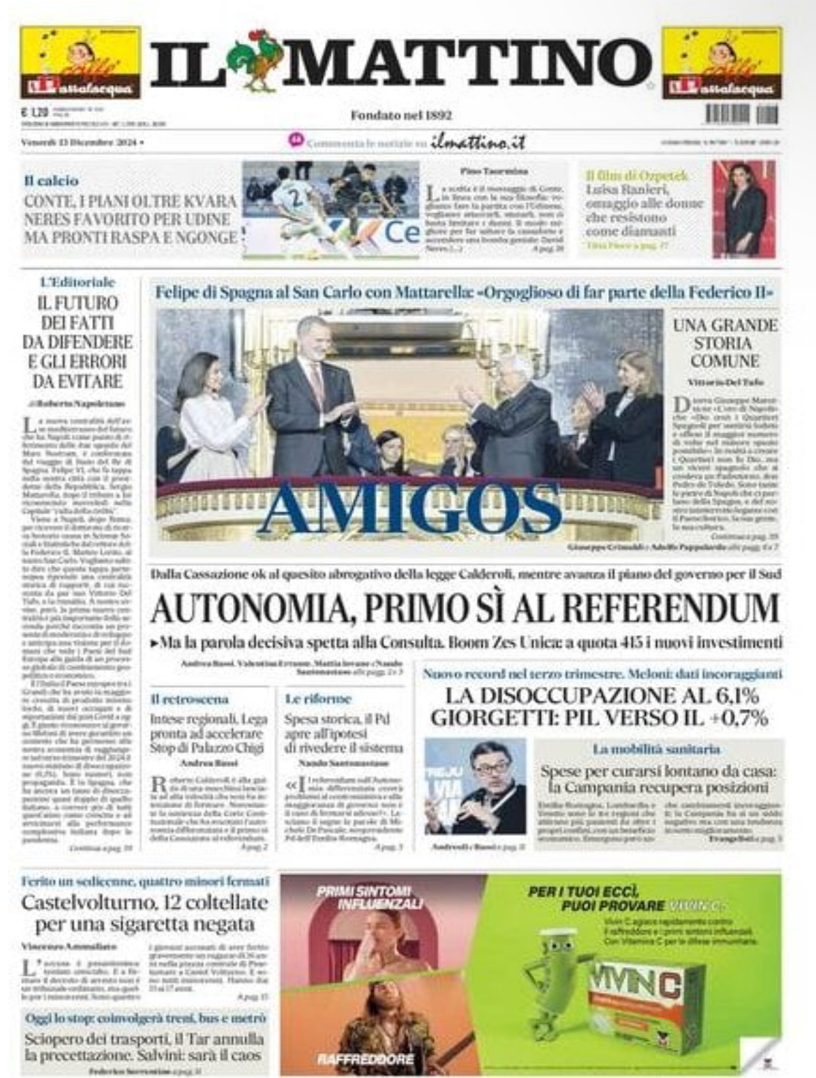 Nell'edizione di oggi, Il Mattino dedica spazio in prima pagina al Napoli e alle probabili scelte di Antonio Conte per la trasferta in Friuli sul campo dell’Udinese: “Conte, i piani oltre Kvara. Neres favorito per Udine, ma pronti Raspa e Ngonge”. Di seguito la prima pagina completa.