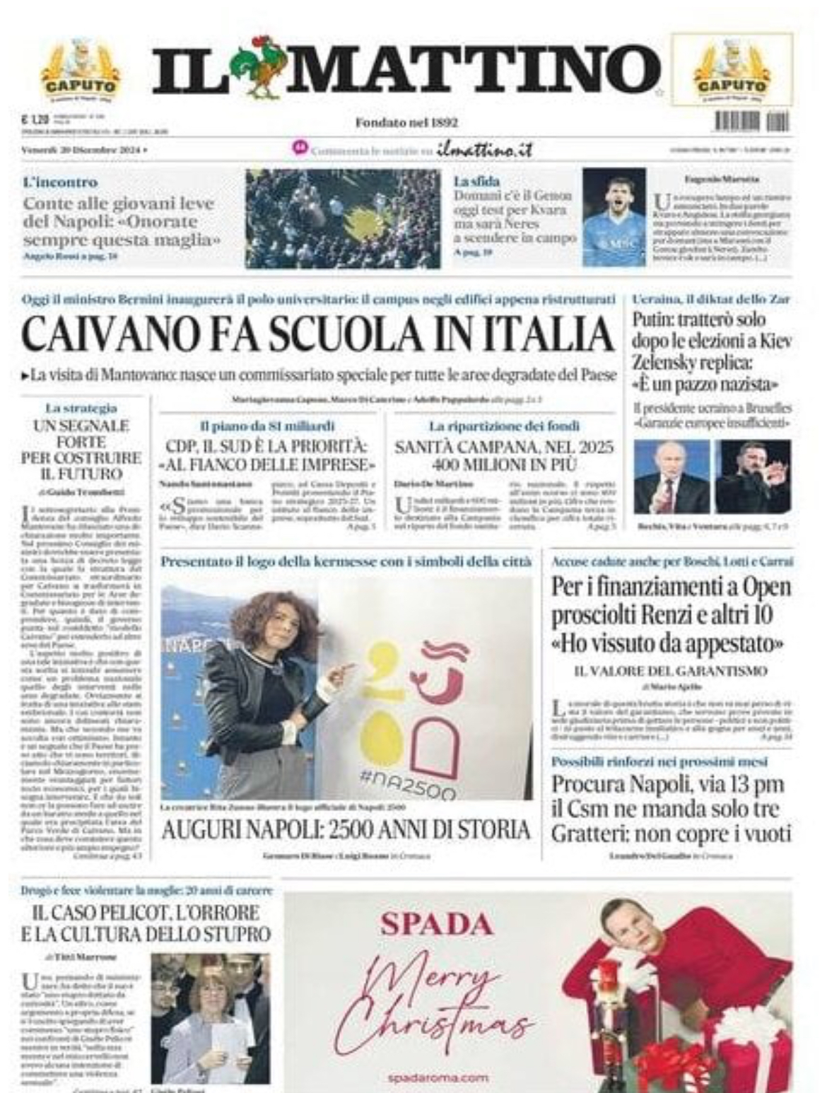 Nell'edizione di oggi, Il Mattino dedica spazio al Napoli in prima pagina: “Domani c’è il Genoa: oggi test per Kvara ma sarà Neres a scendere in campo”. Di seguito la prima pagina integrale.