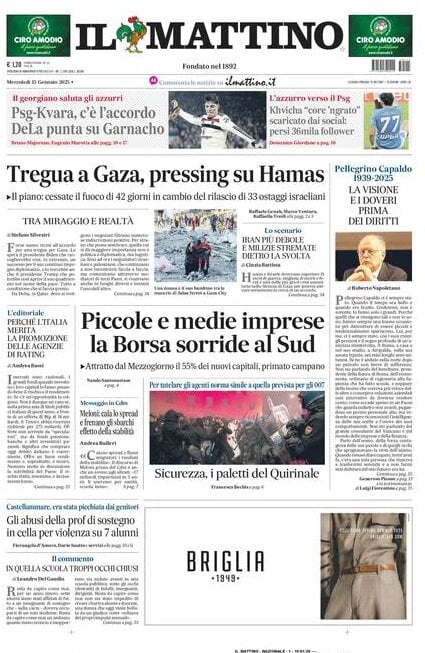 Nell'edizione di oggi, Il Mattino dedica spazio in prima pagina al mercato del Napoli: "Psg-Kvara, c'è l'accordo: DeLa punta su Garnacho. Il georgiano saluta gli azzurri". "Khvicha 'core 'ngrato' scaricato dai social: per 36mila follower". Di seguito la prima pagina integrale.