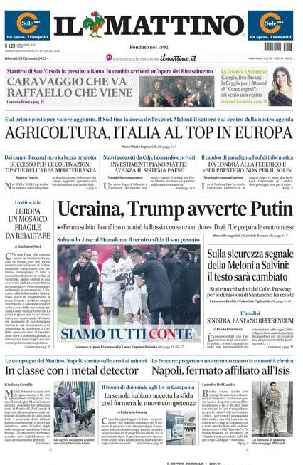 Nell'edizione di oggi, Il Mattino dedica spazio in prima pagina al Napoli in vista della sfida di sabato contro la Juventus: "Siamo tutti Conte. Sabato la Juve al Maradona: il tecnico sfida il suo passato". Di seguito la prima pagina integrale.