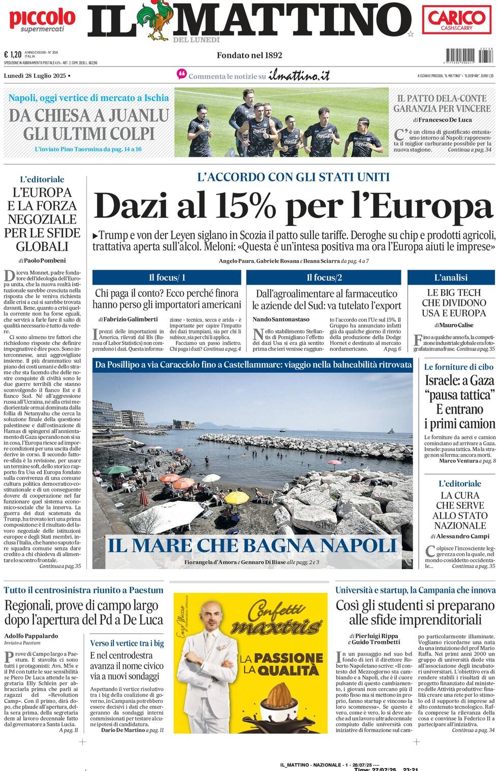 Spazio decicato al Napoli oggi in prima pagina su Il Mattino, con il seguente titolo in taglio alto: "Da Chiesa a Juanlu: gli ultimi colpi". La trattativa tra il Napoli e il Siviglia per Juanlu Sanchez continua a oltranza e nelle scorse ore da parte del club andaluso è arrivato l'ennesimo messaggio di forza. Nel weekend, il laterale del Siviglia è sceso infatti in campo nell'amichevole, in terra tedesca, vinta per 4-2 contro lo Schalke 04. Segnale che la chiusura dell'affare non è proprio così imminente. Il terzino è subentrato nella ripresa, giocando per circa mezz'ora. Sebbene abbia la necessità di vendere, la società biancorossa non vuole svalutare il valore dei propri calciatori.