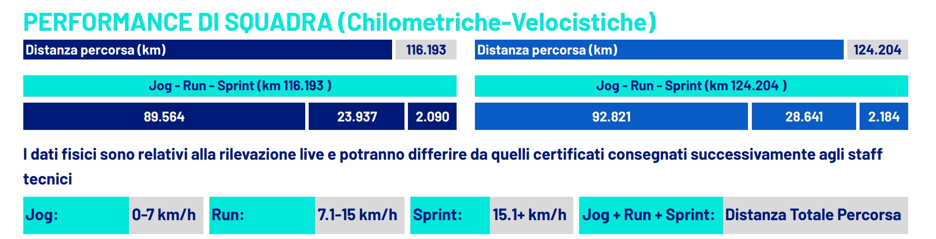 Grande prova di squadra da parte del Napoli, che sbanca il Gewiss Stadium di Bergamo battendo l'Atalanta 3-2. Gli uomini di Antonio Conte sovrasta la squadra di Gian Piero Gasperini percorrendo più chilometri e raggiungendo velocità più alte. Incredibile il divario nei chilometri percorsi, sono circa 124 quelli accumulati dal Napoli, contro i circa 116 dell'Atalanta. Di seguito i dati riportati dalla Lega Serie A.