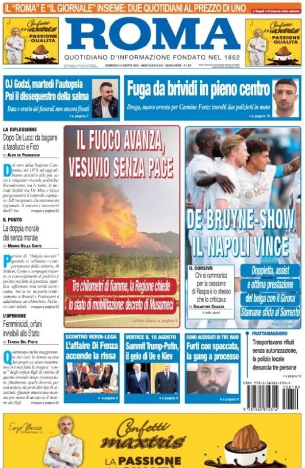 Ed è proprio al fuoriclasse belga che è dedicato il titolo d'apertura dell'edizione odierna de Il Roma: "De Bruyne-show, il Napoli vince". Doppietta, assist e ottima prestazione del belga coi catalani. "Chi si rammarica per la cessione di Raspa è lo stesso che lo criticava", si legge invece nel corsivo.