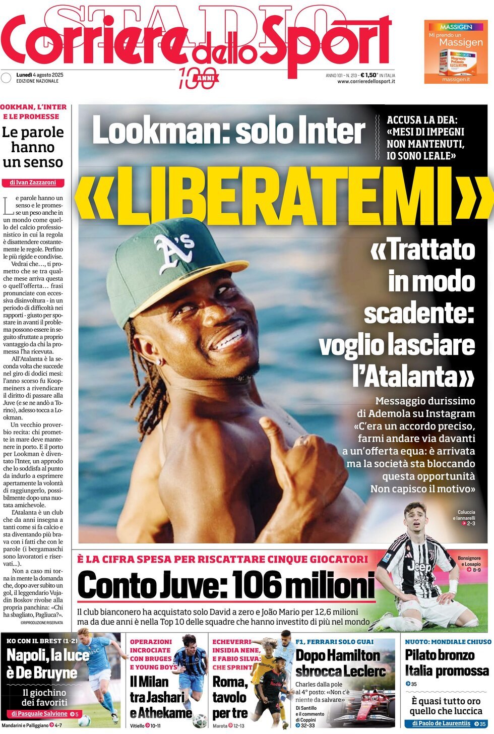 "Liberatemi". È il grido che campeggia oggi sulla prima pagina del Corriere dello Sport e che sintetizza il caso Ademola Lookman. L’attaccante nigeriano ha rotto il silenzio con un durissimo messaggio su Instagram, nel quale punta il dito contro l’Atalanta: "Mesi di impegni non mantenuti, io sono leale. Sono stato trattato in modo scadente: voglio lasciare l’Atalanta"