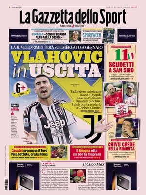 "Vlahovic in uscita" è il titolo di apertura presente oggi sulla prima pagina de La Gazzetta dello Sport. Nonostante la partenza con turbo del serbo in questa stagione la Juventus non ha cambiato idea e proverà a venderlo (possibilmente all'estero) nella sessione invernale di mercato, prima che il contratto dell'attaccante arrivi a scadenza: "La Juve lo rimetterà sul mercato a gennaio - si legge ancora -. Tudor deve valorizzare David e Openda. Già con l'Atalanta il serbo in panchina. Il club punta a cederlo a Chelsea o United".