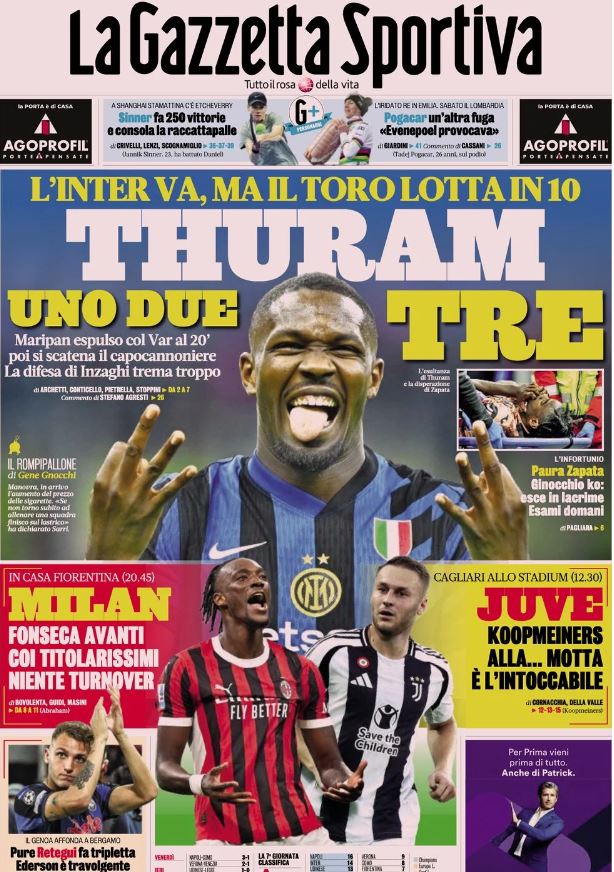 La Gazzetta dello Sport: "Thuram, uno, due, tre: l'Inter va"