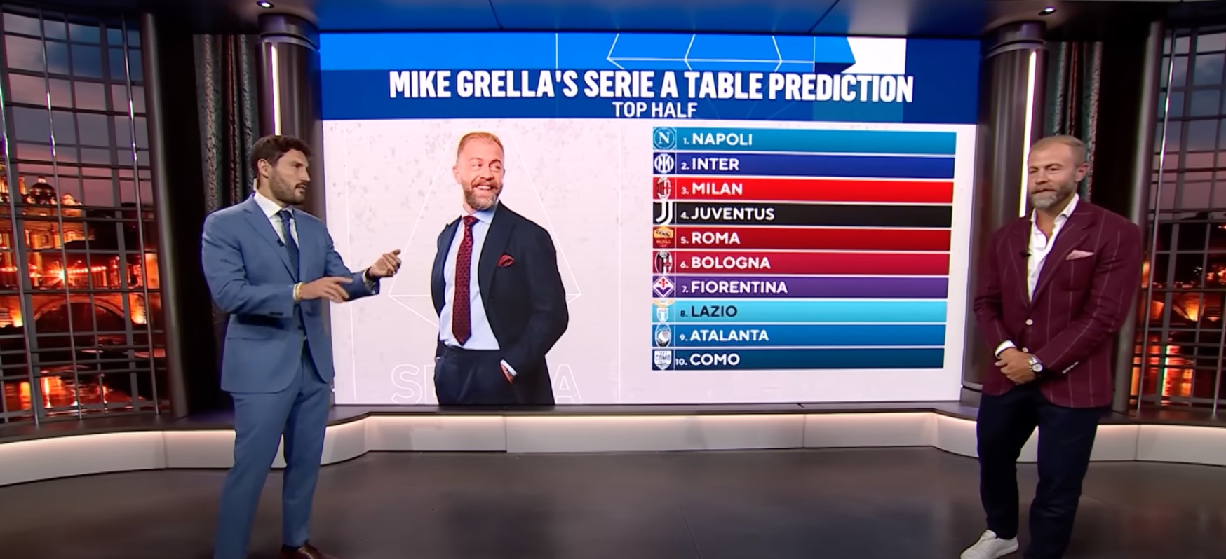 Mike Grella, ex calciatore statunitense di origini italiane, ha realizzato la sua griglia della Serie A per il popolare canale americano CBS che segue con attenzione le vicende del calcio italiano: “Il Milan lo vedo terzo, con Allegri giocheranno in contropiede, ovviamente perdono Theo, ma sarà una squadra pragmatica e cercheranno molto Leao e Pulisic. Ho delle domande sulla loro difesa, li vedo un po’ lenti, ma gli acquisti sono ottimi. La Juventus quarta, ritrovano Bremer e conservano Tudor che li aveva portati quarti e non faranno peggio. La Roma quinta? Gasperini è uno dei migliori allenatori italiani, ma all’Inter non durò a lungo e non sono così convinto perché chi segnerà? Dovbyk e Ferguson? All’Atalanta ha impiegato anni per costruire quella squadra. Lui pretende molto, intervistati Lookman che ci disse quanto sia difficile. Avrà bisogno di tempo.